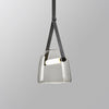 - La suspension moderne utilise des abat-jour en verre et des bandes de cuir pour un look simple et durable.