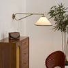 - The design includes a rotatable universal head for flexibility, with a traditional cone-shaped fabric shade and rounded brass arm—balancing practicality with graceful lines.