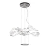 Cette suspension présente des éléments phytomorphes en PMMA moulé, avec des textures ondulées et de claires surfaces en forme de feuille. Le corps central COB diffuse une lumière indirecte, créant un effet scénique et réfléchi sur le plafond.