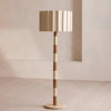 Lampadaire Rayé en Travertin Abat-Jour Plissé Bois Naturel