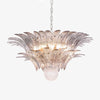 Des feuilles en verre de Murano transparent soufflé à la main forment un lustre à plusieurs niveaux spectaculaire, couronné d'un délicat globe en verre. Idéal pour les intérieurs luxueux, les salles à manger ou les halls d'entrée imposants à la recherche d'un point focal sculptural.