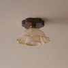 Lampe Plafond Abat-jour Tissu Festonné Plafond Bois de Noyer Vintage