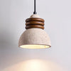 Lampe Suspension Dôme en Travertin Anneaux en Bois de Noyer Ambiance Minimaliste