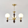 Ce lustre allie à la perfection design classique et moderne avec ses globes en verre ronds, créant une ambiance harmonieuse. Les finitions chaleureuses en bois et en métal doré apportent sophistication et chaleur, faisant de ce lustre le point central de toute pièce. Idéal pour les salons ou les salles à manger, il sublime l'ambiance d'une touche d'élégance intemporelle.