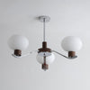 Ce lustre en finition chromée apportera une touche d'éclat à votre salon. Fabriqué en verre blanc immaculé, il allie classiques du milieu du siècle et éléments modernes. Les cinq abat-jour en verre sont soutenus par des bras élégamment courbés, apportant une touche raffinée. Sa teinte sphérique contraste avec la finition noyer, créant un effet visuel captivant.