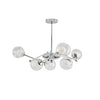 Ce lustre allie miroirs chromés et abat-jour en verre transparent avec une finition chromée polie. Son design élégant et original apporte une touche sophistiquée et ludique à n'importe quelle pièce, ce qui en fait la pièce maîtresse idéale des espaces contemporains.