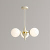 Ce lustre présente une structure lisse aux tons crème et des abat-jour sphériques givrés, offrant une lumière douce et ambiante. Sa forme équilibrée et sa palette subtile en font un ajout charmant aux chambres, salons ou espaces de vie modernes.